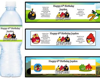 (20) Personalized ANGRY BIRDS 2 x 4 Glossy Water Bottle Labels Party F – Edible Toppers & More